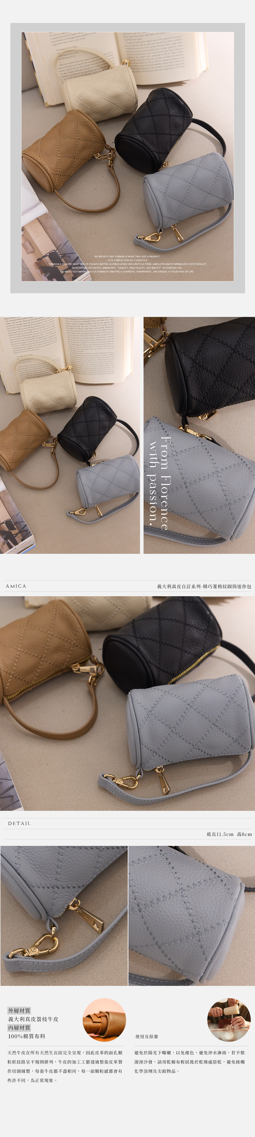 AMICA義大利真皮自訂系列-精巧菱格紋圓筒迷你包